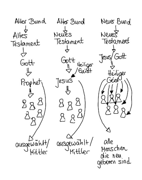 Hesekiel 36,25-29 - Jeremia 31,31-34 - Ein neues Herz und der Heilige Geist verändern uns von innen heraus - Gott nimmt unsere Götzen weg - Alter Bund/Altes Testament - Alter Bund/Neues Testament - Neuer Bund/Neues Testament - 3 Spalten machen - Mose = Mittler des Alten Bundes - Jesus ist Mittler des Neuen Bundes - Hebr. 9,15+16 - Hebräer 7+8 - Neue Schöpfung im Neuen Bund, 2. Kor. 5.17 - Neuer Wein in neue Schläuche, Lk. 5,36-39 - Neue Gesetzeslehrer, Mt. 13,52 - Altes und Neues wird aus dem Schatz hervorgeholt - Matthäus 23,2-26 - Die Gesetzeslehrer und die Pharisäer haben sich auf den Stuhl Mose gesetzt, schau genau hin, welchen Bund man dich lehren will! Welchen Mittler verkauft man dir? Jesus oder Mose? - Berg Sinai - Mose als Mittler brachte das Gesetz der Worte/Steintafeln, 2. Mose 24,1-8 - Golgatha - Jesus als Mittler brachte den Frieden und die Erlösung vom Gesetz und das Gesetz des Glaubens, Rö. 3.27 - Römer 7,4 - Mit Christus gestorben/Sünde wurde getragen/meine Schuld getilgt - Römer 6,1-7 - Epheser 2,4-8 - Gesetz war nur ein Schatten, Hebr.10,1 - Hebr. 10,10 - Wir sind geheiligt durch das Opfer Jesus - Rö. 12,1+2 - Wir 'lassen' uns verändern, damit wir Gottes Willen erkennen können. - Gott wollte und WILL unser Gott sein, wir hatten die Herrlichkeit verfehlt, Rö. 3, 23-26 - Vorsicht vor Götze Intelligenz und Irrlehren in die 'scheinbare' alte Wahrheit, Gott hat uns durch die Einfachheit des Kreuzes erlöst, 1. Kor. 1,21 - 1. Kor. 3,19.